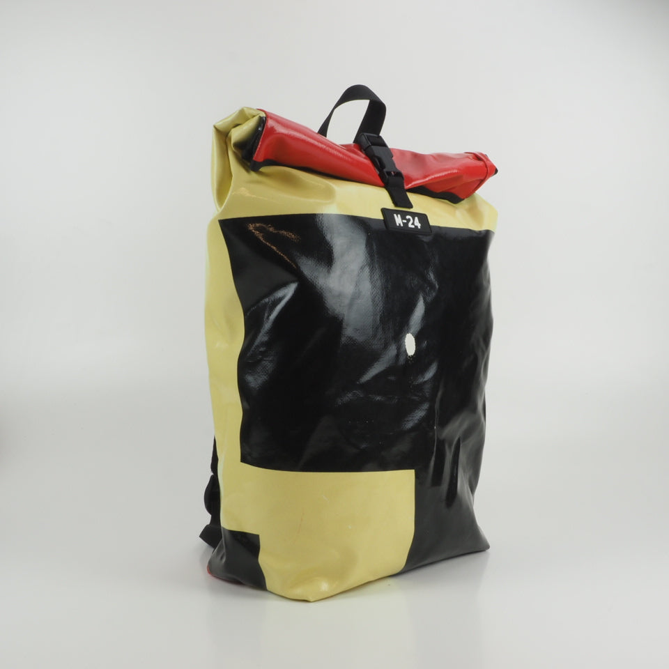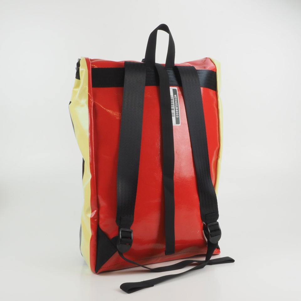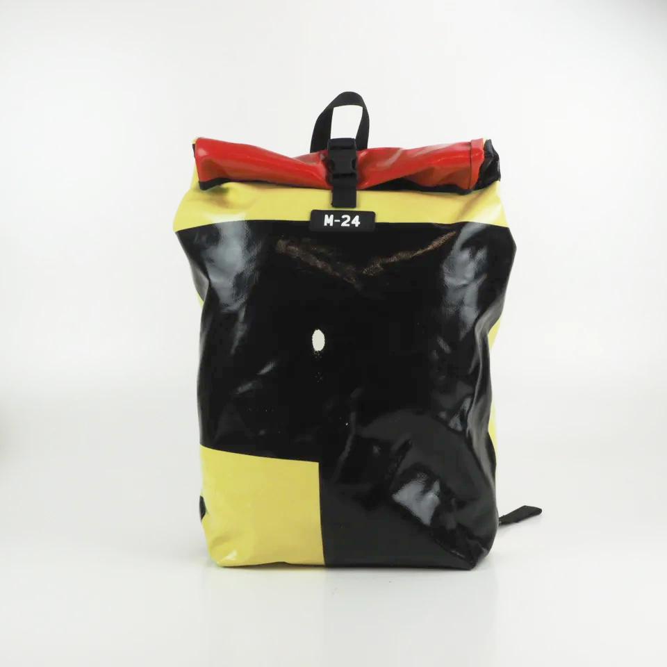 Designed for urban commuting, this large backpack is made from super-durable, reused truck tarpaulin, making it as tough as the streets you navigate daily. It's waterproof (though don't take it swimming), but it's perfect for rainy commutes or unexpected downpours.