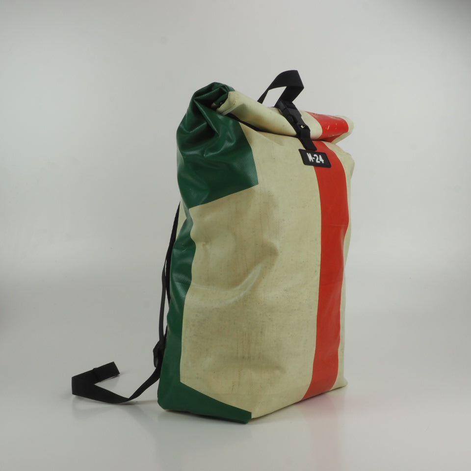 Designed for urban commuting, this large backpack is made from super-durable, reused truck tarpaulin, making it as tough as the streets you navigate daily. It's waterproof (though don't take it swimming), but it's perfect for rainy commutes or unexpected downpours.