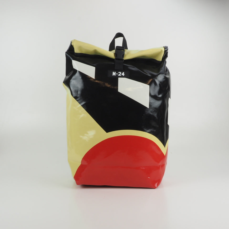 Designed for urban commuting, this large backpack is made from super-durable, reused truck tarpaulin, making it as tough as the streets you navigate daily. It's waterproof (though don't take it swimming), but it's perfect for rainy commutes or unexpected downpours.