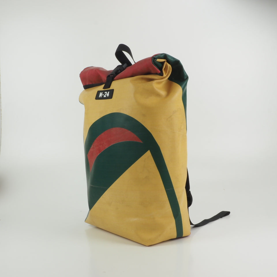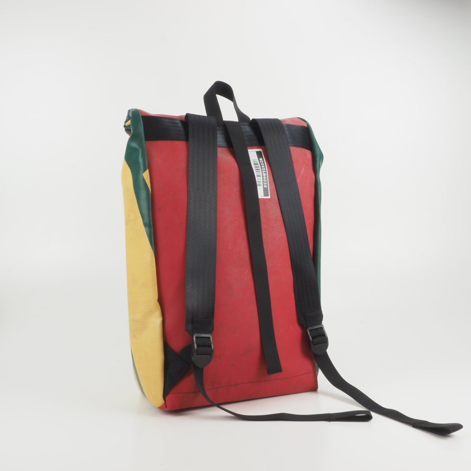 Designed for urban commuting, this large backpack is made from super-durable, reused truck tarpaulin, making it as tough as the streets you navigate daily. It's waterproof (though don't take it swimming), but it's perfect for rainy commutes or unexpected downpours.