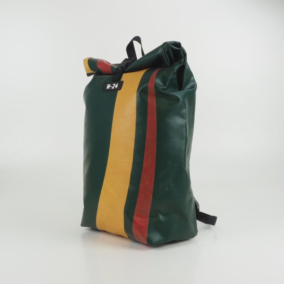 Designed for urban commuting, this large backpack is made from super-durable, reused truck tarpaulin, making it as tough as the streets you navigate daily. It's waterproof (though don't take it swimming), but it's perfect for rainy commutes or unexpected downpours.