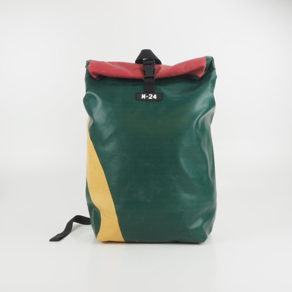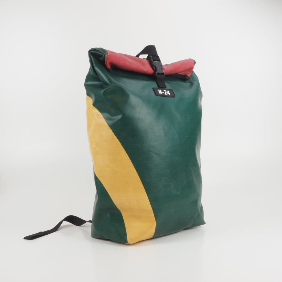 Designed for urban commuting, this large backpack is made from super-durable, reused truck tarpaulin, making it as tough as the streets you navigate daily. It's waterproof (though don't take it swimming), but it's perfect for rainy commutes or unexpected downpours.