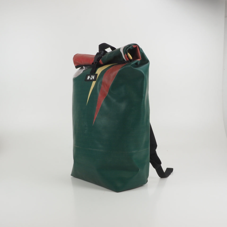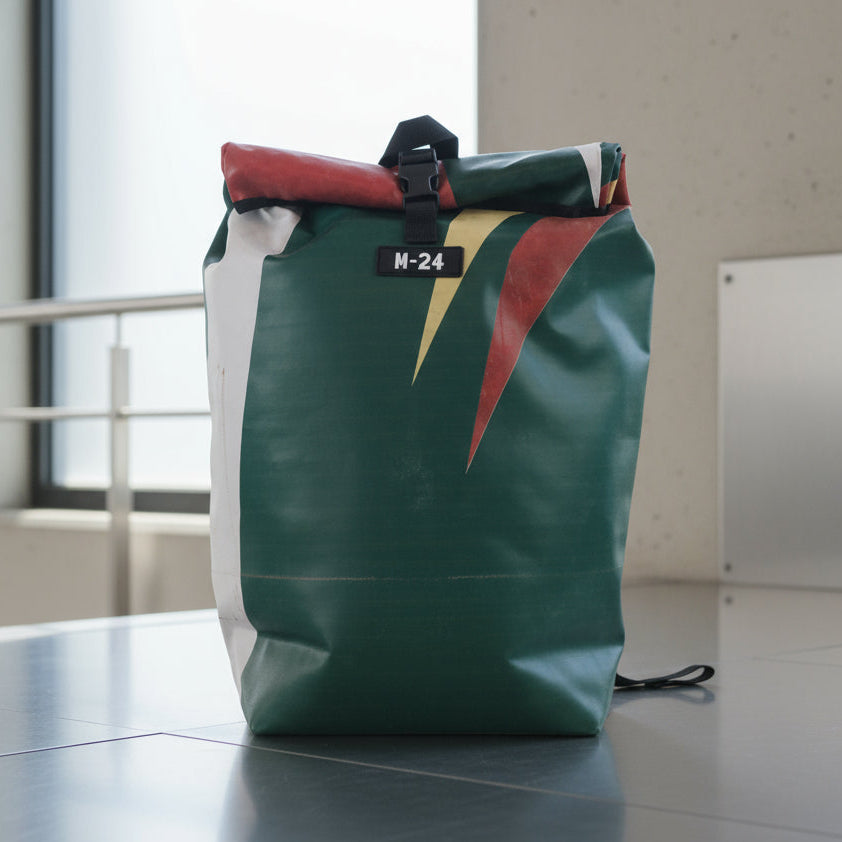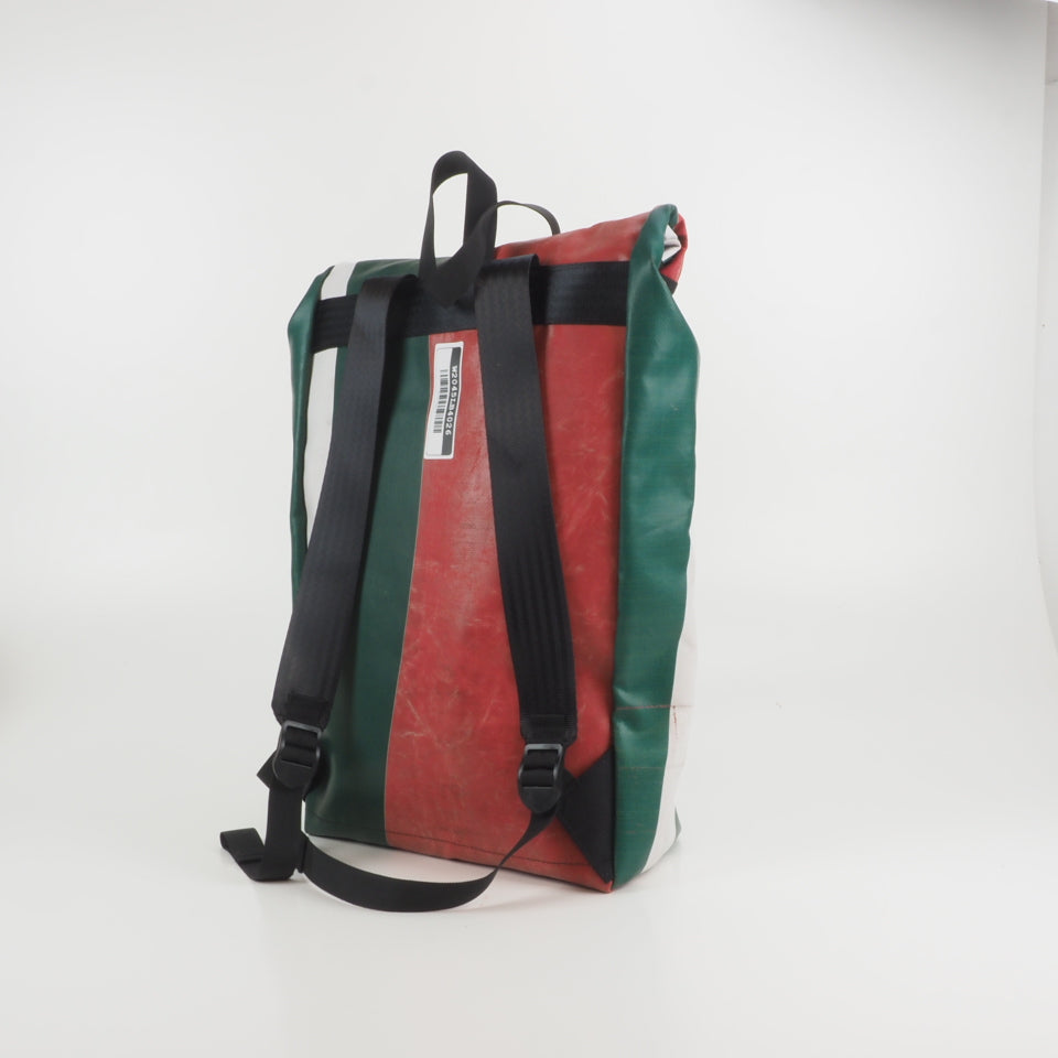 Designed for urban commuting, this large backpack is made from super-durable, reused truck tarpaulin, making it as tough as the streets you navigate daily. It's waterproof (though don't take it swimming), but it's perfect for rainy commutes or unexpected downpours.