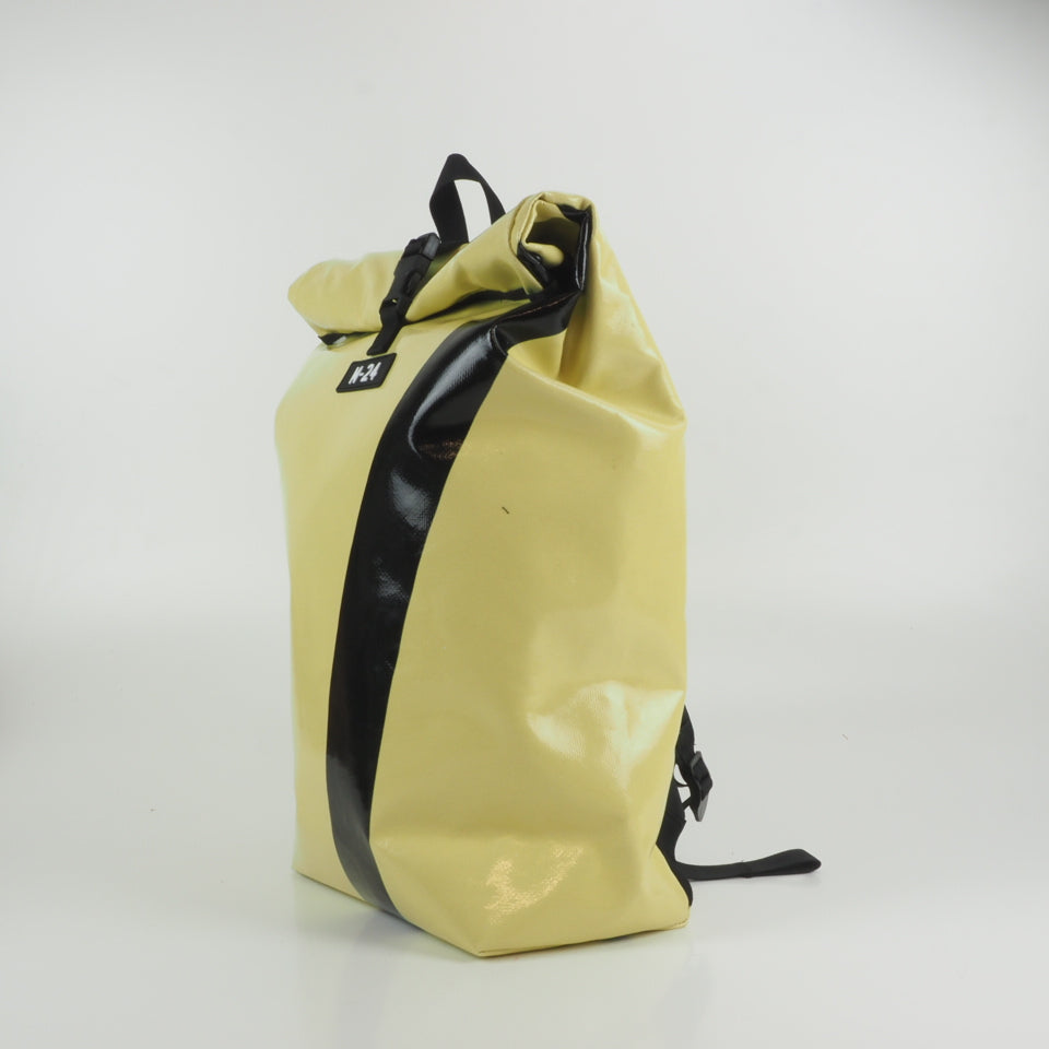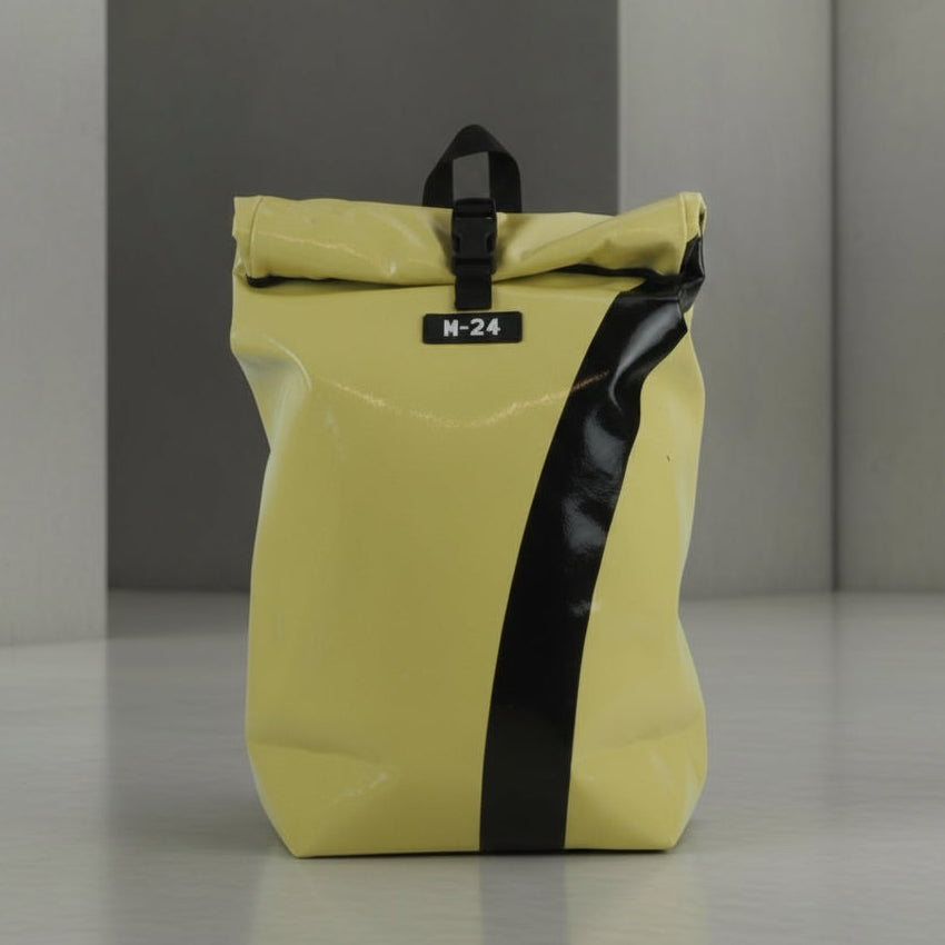 Designed for urban commuting, this large backpack is made from super-durable, reused truck tarpaulin, making it as tough as the streets you navigate daily. It's waterproof (though don't take it swimming), but it's perfect for rainy commutes or unexpected downpours.