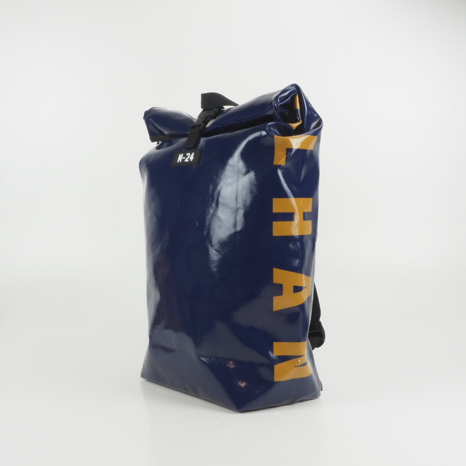 Designed for urban commuting, this large backpack is made from super-durable, reused truck tarpaulin, making it as tough as the streets you navigate daily. It's waterproof (though don't take it swimming), but it's perfect for rainy commutes or unexpected downpours.