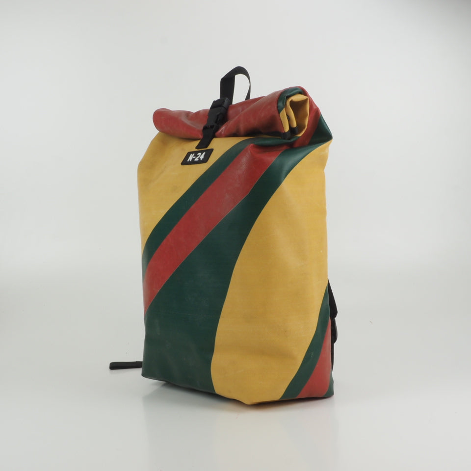 Designed for urban commuting, this large backpack is made from super-durable, reused truck tarpaulin, making it as tough as the streets you navigate daily. It's waterproof (though don't take it swimming), but it's perfect for rainy commutes or unexpected downpours.