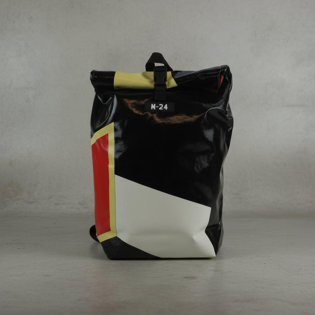Designed for urban commuting, this large backpack is made from super-durable, reused truck tarpaulin, making it as tough as the streets you navigate daily. It's waterproof (though don't take it swimming), but it's perfect for rainy commutes or unexpected downpours.