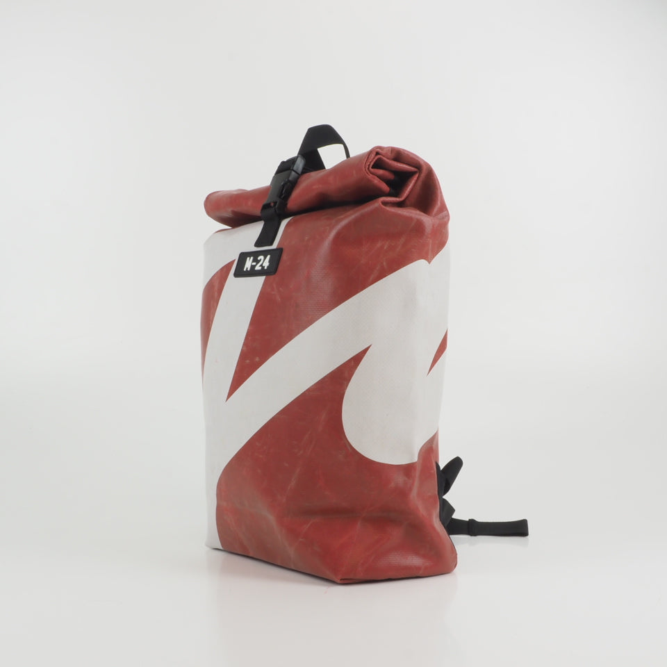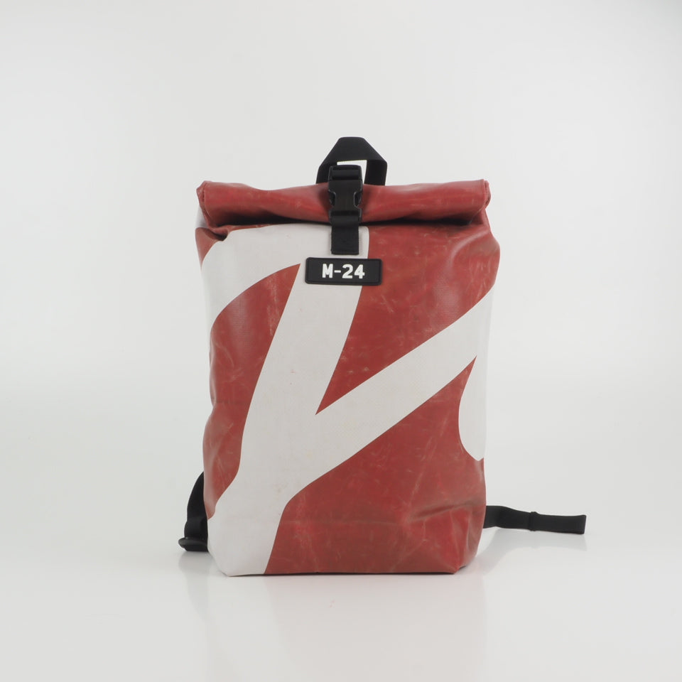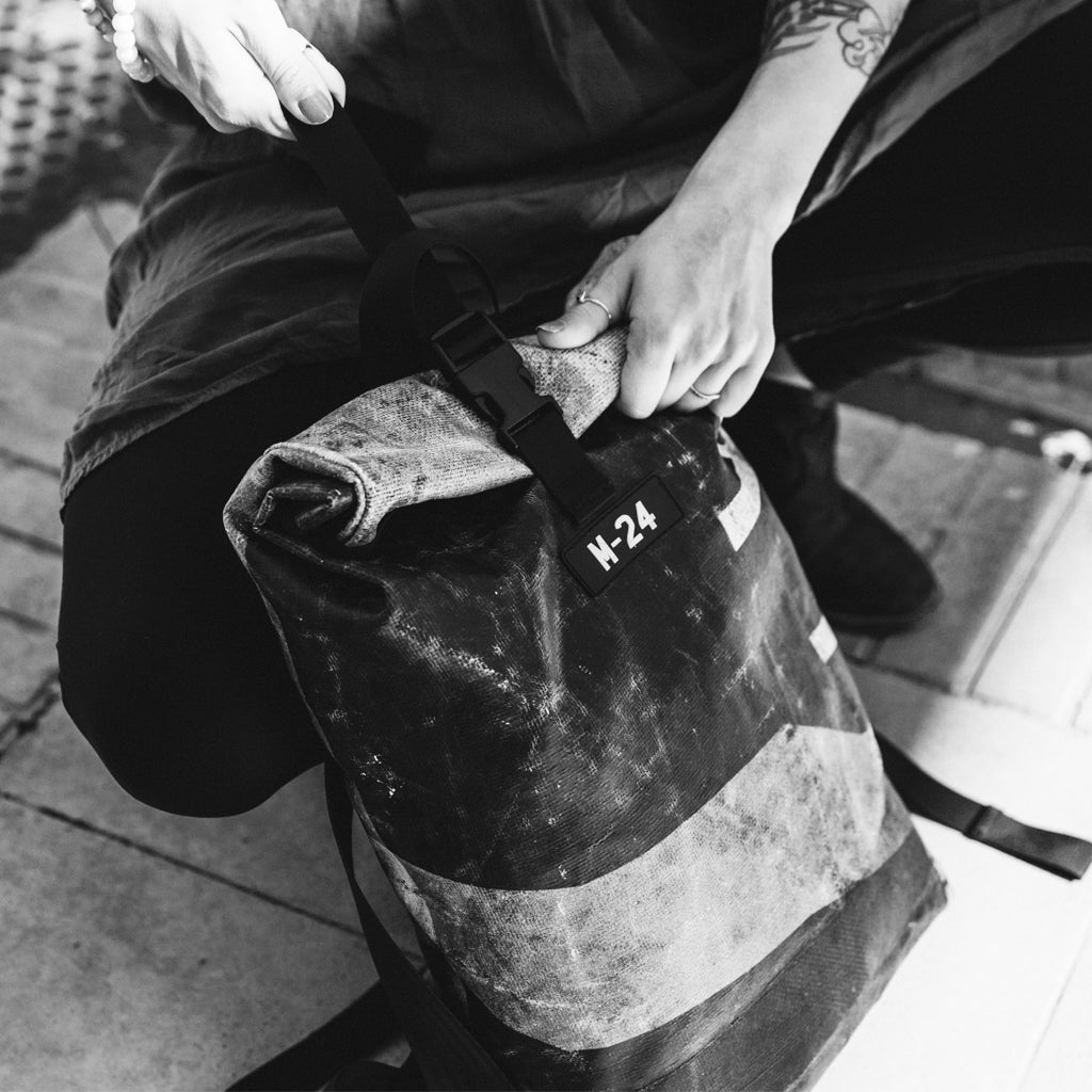 Our medium roll-top backpack is made from ultra-tough truck tarpaulin, giving it the durability you need for everyday use. It's waterproof enough to handle the elements (don’t submerge it) and has an 18-20 liter capacity, perfect for carrying your essentials.